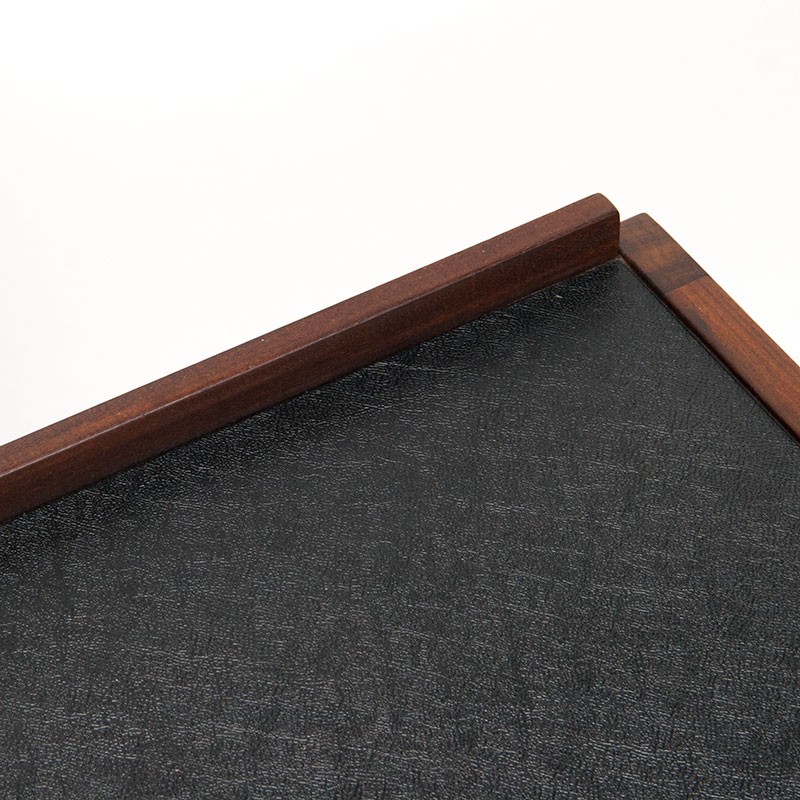 Design bureau uit 1963, Engeland. Ontworpen door de Deense ontwerper Ib Kofod-Larsen als onderdeel van de Dansih range voor G Plan/ E. Gomme. Vintage bureau uitgevoerd in teakhout met kunstleren bovenzijde. De conditie is goed, enkel zeer minimale gebruikssporen. De afmetingen zijn 129,5 cm breed, 58 cm diep en 76,5 cm hoog, het werkblad is 74 cm hoog.