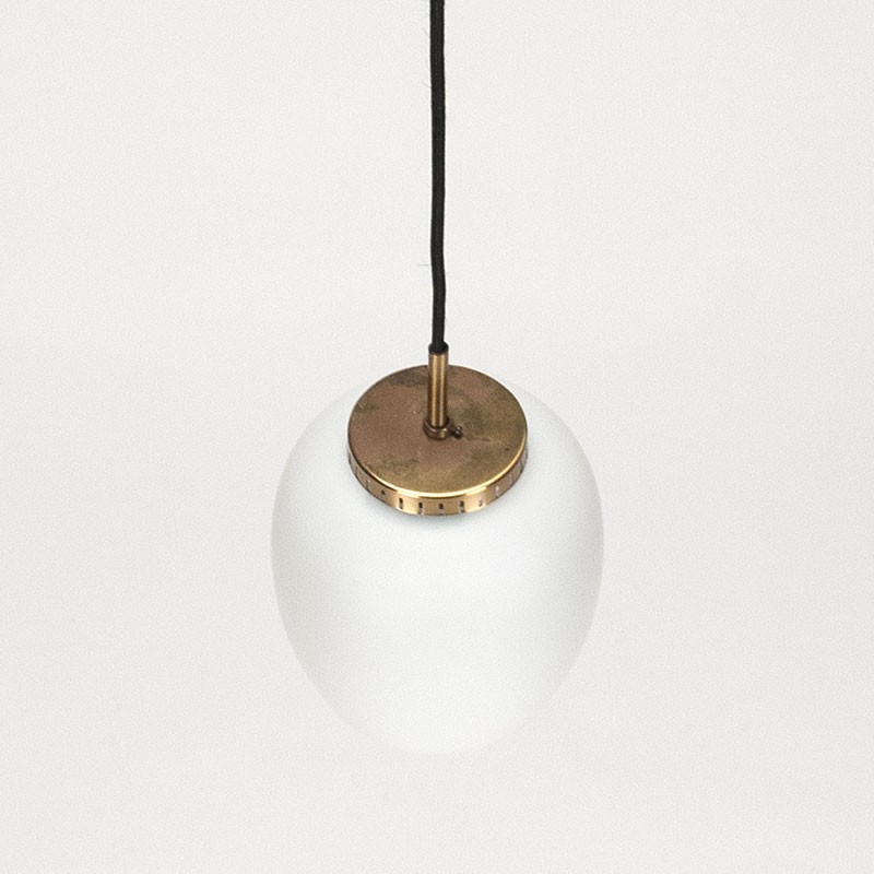 Design hanglamp uit de vijftiger jaren, Denemarken. Genaamd de Kina pendel, een ontwerp van Bent Karlby voor Lyfa. Wit melkglas met messing details, inclusief mat glazen diffuser. Mooie stijlvolle vintage lamp. De conditie is goed gezien de leeftijd, bedrading is venieuwd. De afmetingen zijn 22 cm hoog (27 inclusief het messing pijpje) en 17 cm in diameter.