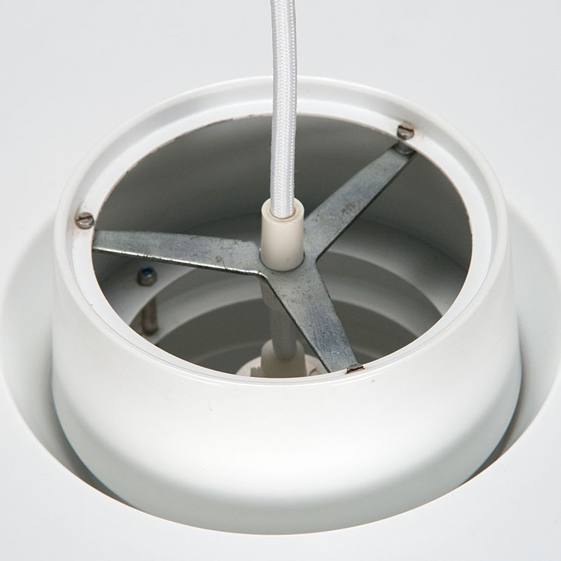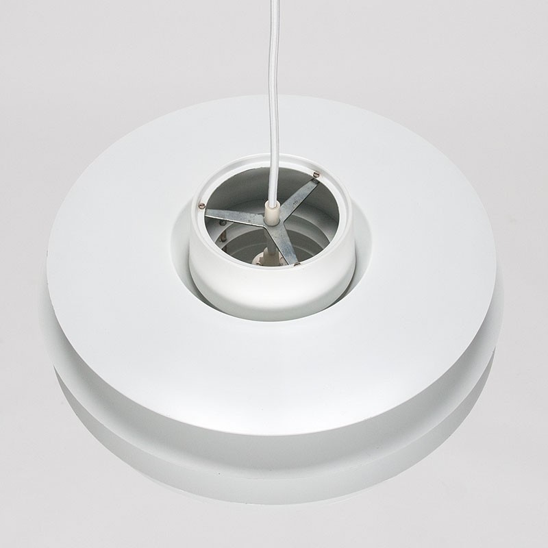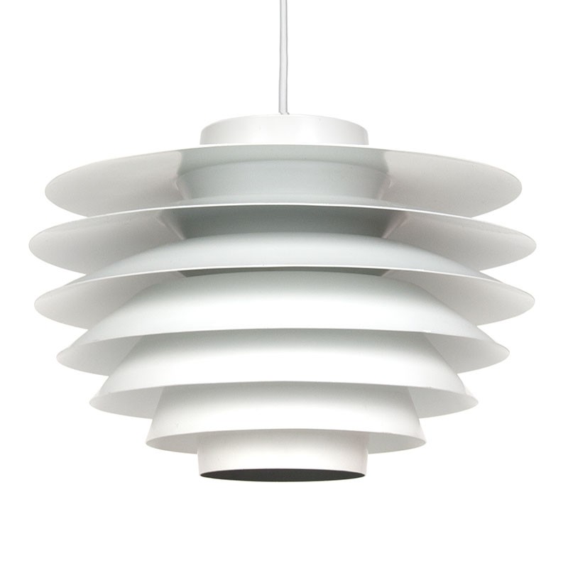 Design hanglamp, Mid-Century Deens, uit de zestiger jaren. De vintage Verona lamp is ontworpen door Svend Middelboe en uitgebracht door Nordisk Solar. Mooi model met 7 lagen waardoor het licht prachtig verspreid. De conditie is goed, minimale gebruikssporen, bedrading is vervangen, zie details. De afmetingen zijn 40 cm in diameter en 27,5 cm hoog.
