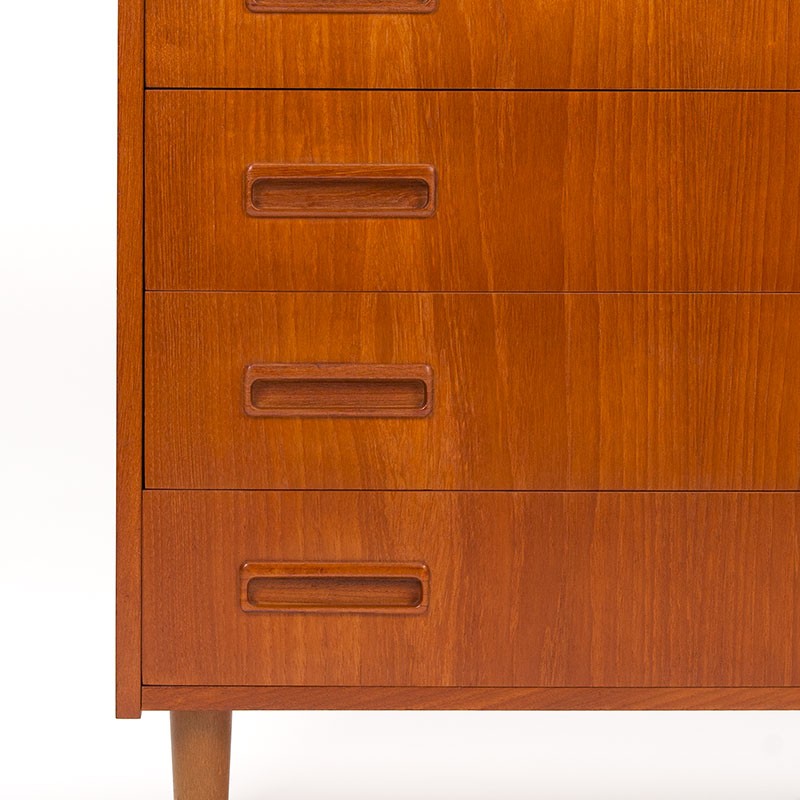 Deense teakhouten Mid-Century ladekast, gemaakt in de P. Westergaard Møbelfabrik ( gemerkt). De vintage kast heeft 4 lades en is uitgevoerd in teakhout. Afkosmtig uti de zestiger jaren. De conditie is goed, minimale gebruikssporen passend bij de leeftijd, zie details. De afmetingen zijn 76 cm breed, 41,5 cm diep en 74 cm hoog.